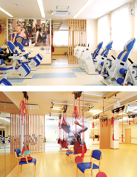 瀬戸内海を一望できる恵まれた空間に、最新鋭のリハビリ機器を備えるポシブル宇野。骨格や筋肉バランスを整えるリハビリエクササイズが可能な「スリング」や、フィンランドで開発された筋力トレーニングマシン「HUR(フー)」など、関節に負担をかけず、高齢者の方でも無理なくリハビリテーションが行える機器が揃っています。